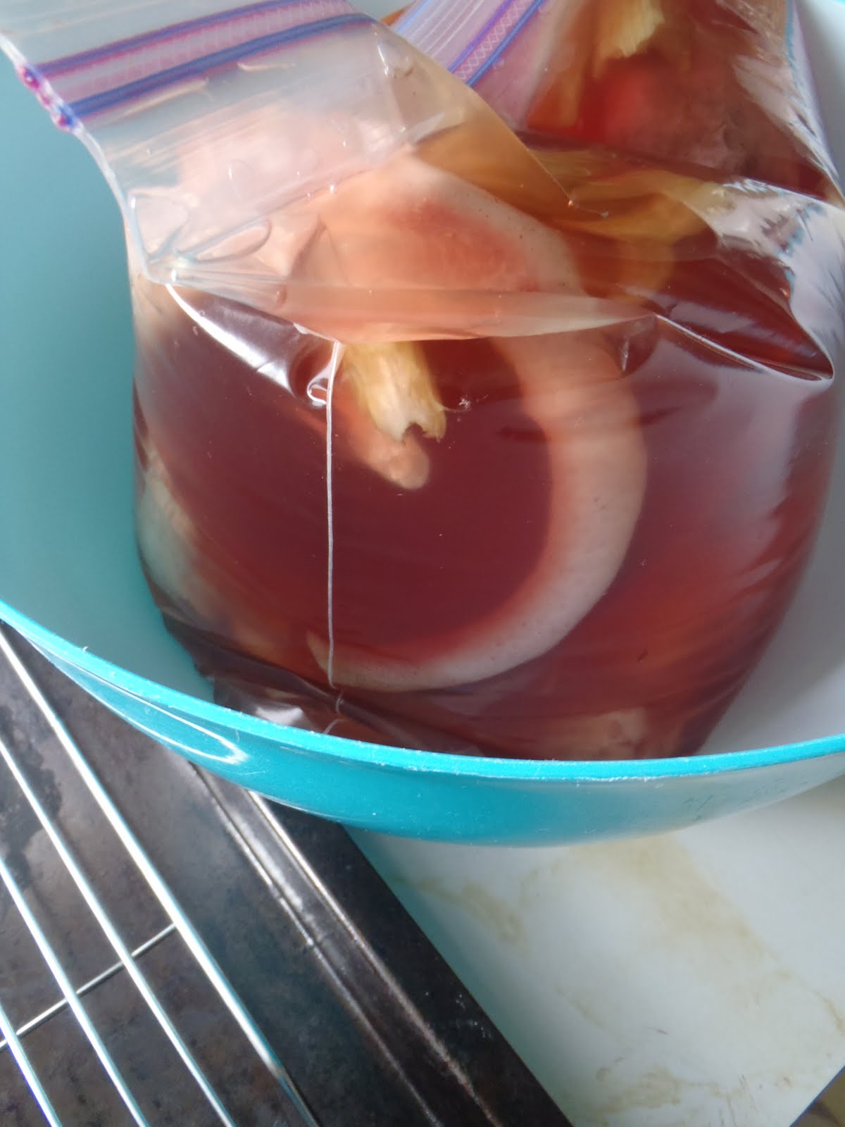 With the ham hock soup in mind, I kept the tails in a standard brine (salt, brown sugar, curing salt, herbs) for about a week.