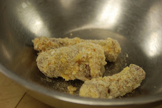 We coated the tails with seasoned flour, egg wash, and bread crumbs.