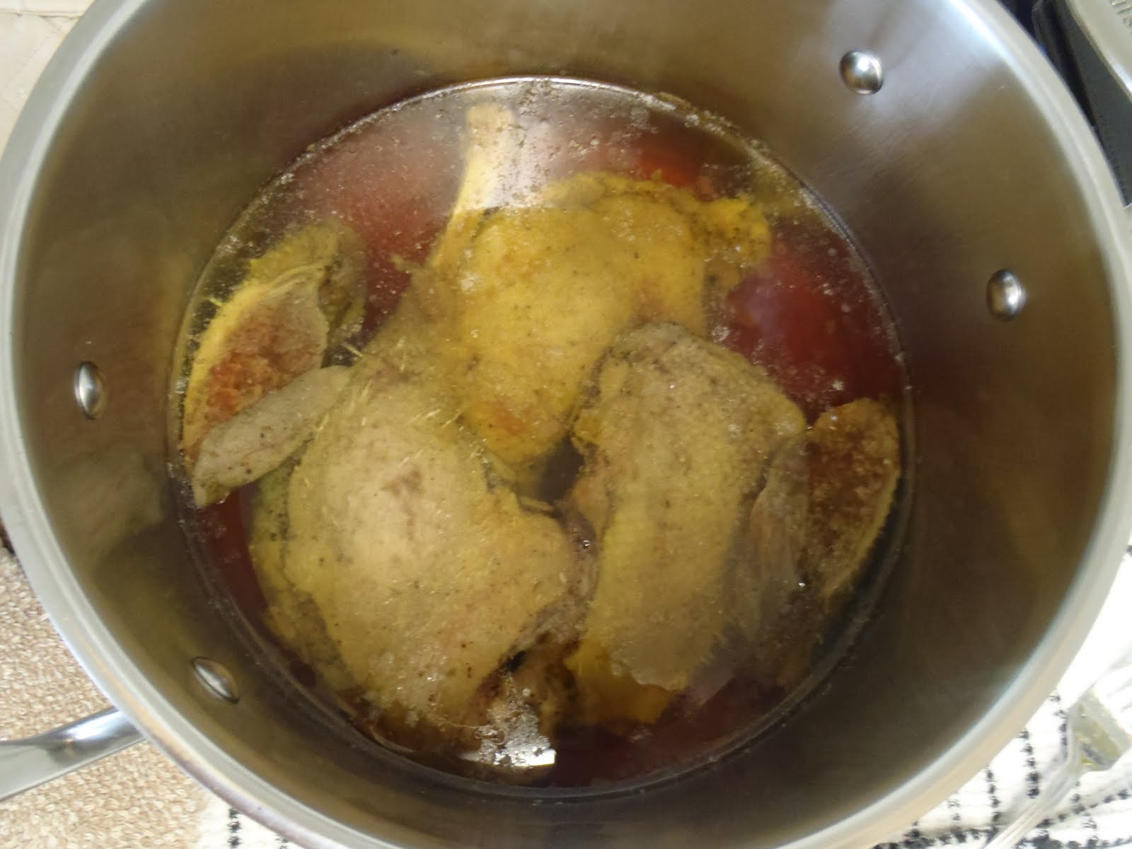 Cooking times for confit are long, usually eight to ten hours. I leave mine overnight (hence the dismal lighting in some of these pictures).