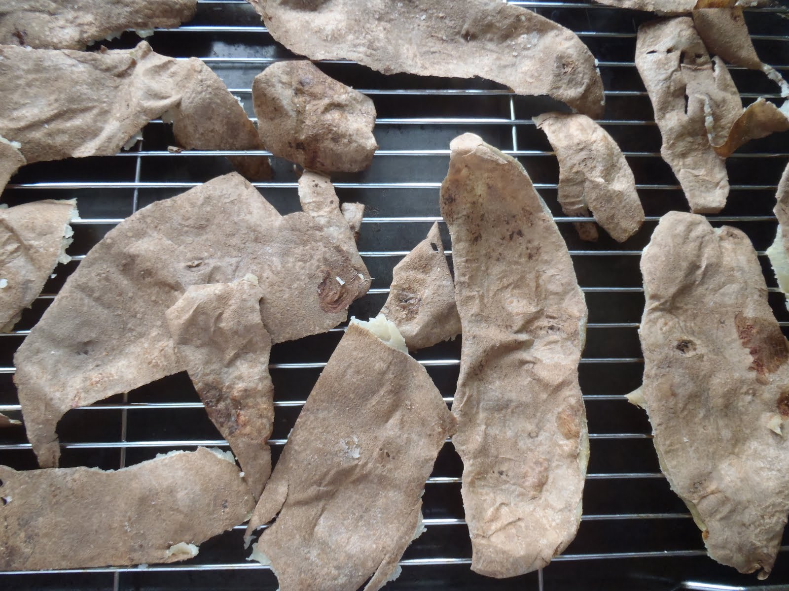 Lay your potato peels on a rack and dry thoroughly in a 225°F oven.