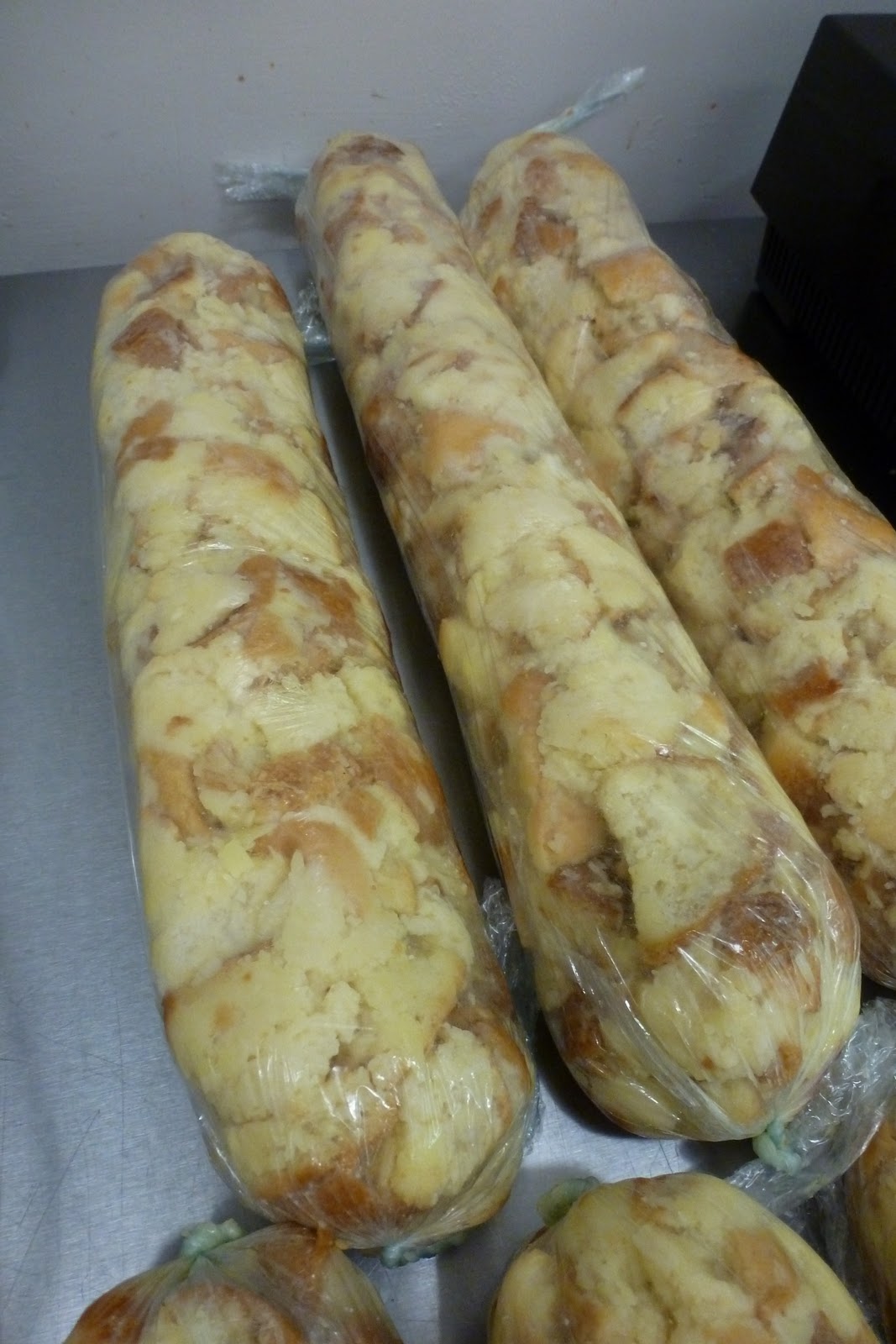 The first is best made with bread that is a few days old, bread that is dry, but not brittle. If you let your bread sit for more than a week, so that it’s completely hard throughout, you can make the second dumpling.